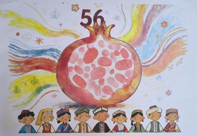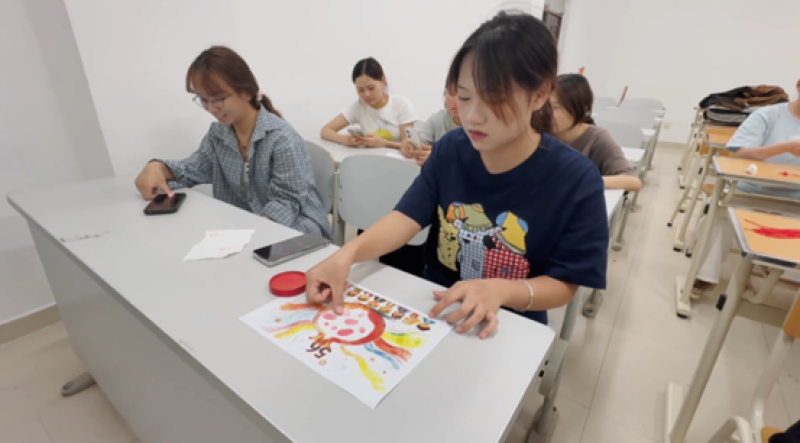 为生动诠释“中华民族一家亲”的深刻内涵,本次活动特别设置了“石榴籽·同心印”环节。同学们在象征民族团结的石榴图案中按下手印,一个个鲜红的手印紧密相依,恰似一粒粒饱满的石榴籽紧紧簇拥。这幅“籽籽同心”的生动画面,将“各民族像石榴籽一样紧紧抱在一起”的温暖理念化为具象表达,使同学们在亲身参与中深化了对中华民族共同体的情感认同,真切感受到了血脉相连的民族情谊。