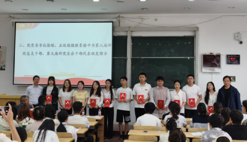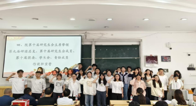 会议期间,院党委书记徐练、正处级组织员徐平为第八届研究生团委总支干部、第九届研究生会代表颁发聘书;院党委副书记雷方俊、青年博士黄伟为第九届团委学生会干部、青协干部代表颁发聘书。随后,第十届研究生会主席刘悦带领第九届研究生团总支、第十届研究生会及第十届团委、学生会、青协成员进行就职宣誓。