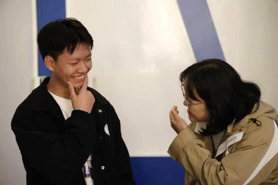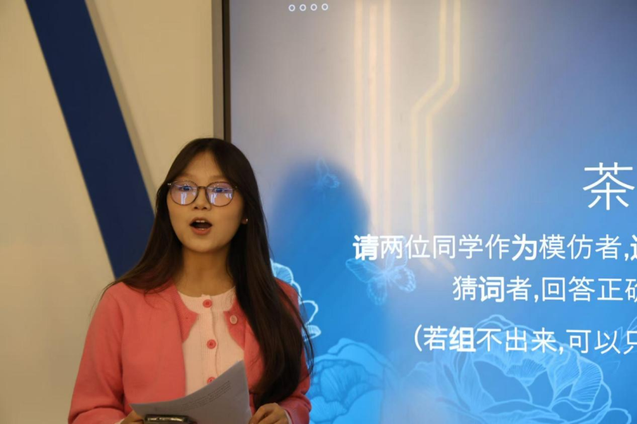 “茶香传话”压轴环节,则以生动的形式演绎了茶文化精髓。八位同学分组合作,通过肢体演绎茶具与茶叶,趣味竞猜其文化元素。描述者们巧妙运用手势与姿态,将无形的茶文化化为具象的沟通,不仅深化了对茶文化的理解,更展现了配合默契的团队协作能力。