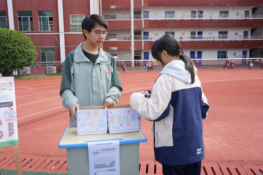 互动实践环节中,学生们抽取“向同学说句鼓励的话”等善意任务,这些微小却坚定的行动,成为了践行善意、凝聚反霸凌共识的生动见证。
