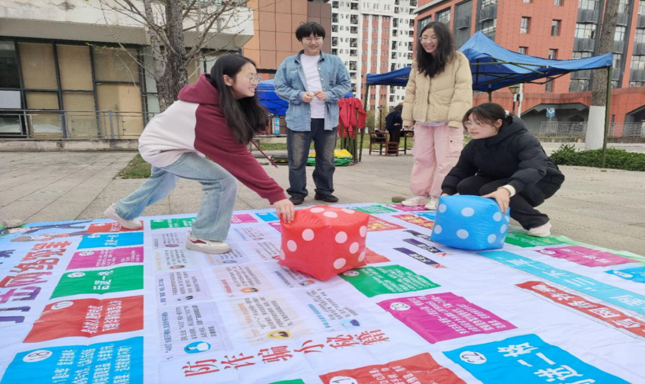 智汇春潮筑心防,寓教于乐强技能。为提高大家的反诈意识,将反诈教育入脑入心,设置大转盘、飞行棋和连连看等多形式的趣味互动场,活动现场,同学们或在转盘指针下解锁“诈骗谜题”,或在飞行棋格间“见招拆招”化解危机,或在卡片配对中构筑“防骗知识网”。在知识与趣味交织的反诈“闯关”中,让学生学会对诈骗“见招拆招”。