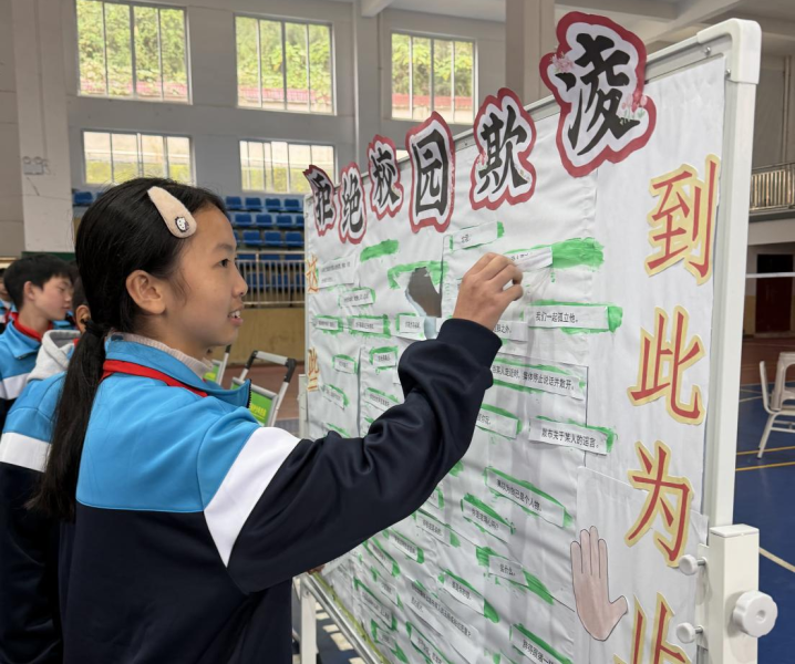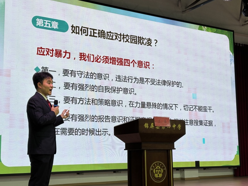 在锦屏县第四中学,研究生支教团成员以“驱散霸凌阴影,点亮友善之光”为主题开展系列教育活动。活动通过“专题教育+互动体验”的模式,着力提升学生的法律意识和共情能力。