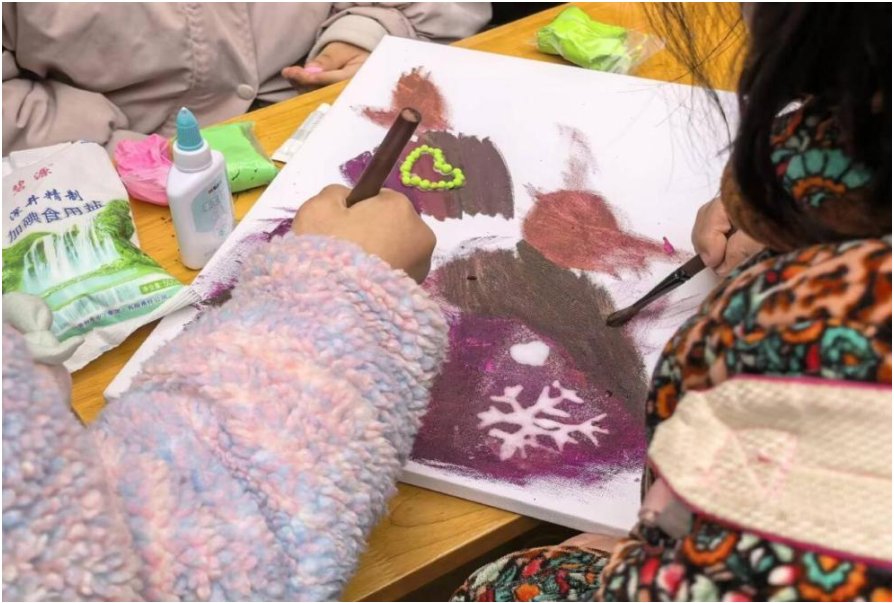活动设置了七大趣味互动环节,志愿者将节气习俗与传统手工结合,陪伴孩子们一起完成手势舞、冬饺包制、雪花绘画、黏土画创等活动。