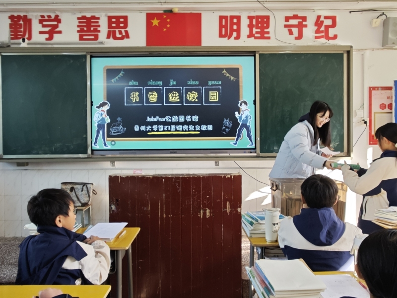 研究生支教团成员在校园内设立“书香驿站”,将学生们借阅的图书按年级与班级分区陈列。Join Fun图书馆负责人表示:“此次给孩子们的图书既注重经典性,又兼顾趣味性,希望能为孩子们打开一扇看世界的窗。”