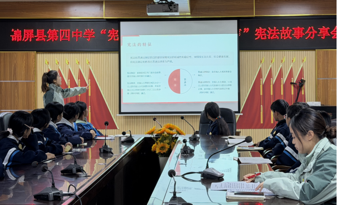 锦屏支队成员在锦屏县第四中学举办“宪法润心灵,青春践法治”故事分享会,用讲故事的方式让宪法知识贴近生活。