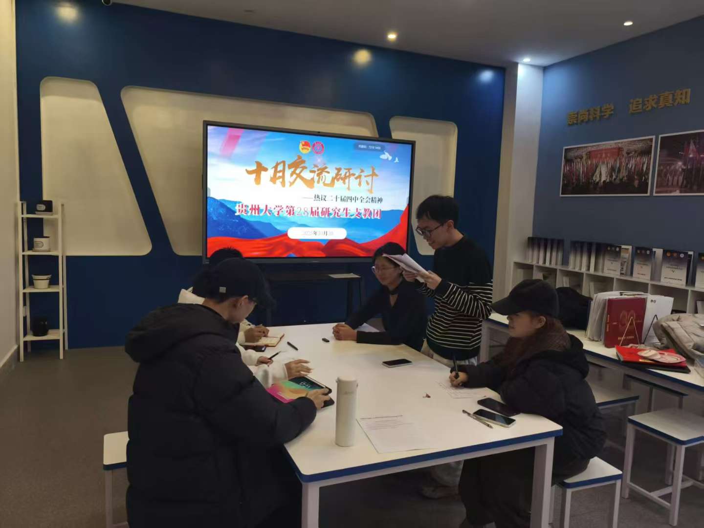 10月30日,我校第28届研究生支教团(以下简称“研支团”)在雅文楼301召开10月交流研讨会。本次会议以深入研读《习近平与大学生朋友们》第一卷为核心内容,同时围绕党的二十届四中全会精神展开系统学习与讨论。