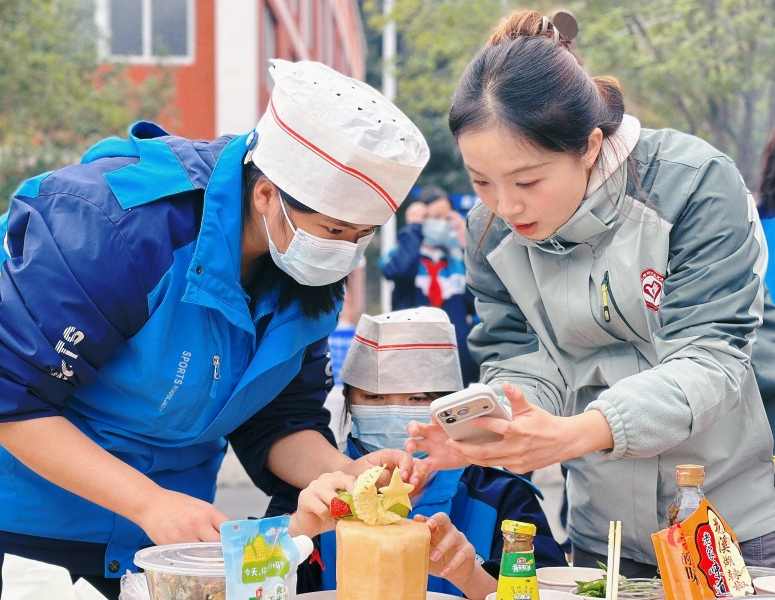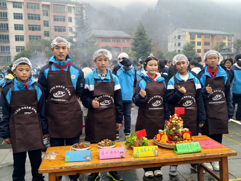 在知识竞答环节,研究生支教团成员组织开展了苗、侗民族知识问答,增强了同学们对苗、侗民族文化的了解与认同。随后举行的厨艺大赛中,成员们积极承担了志愿者组织、学生参赛指导等工作,保障了赛事的顺利进行。