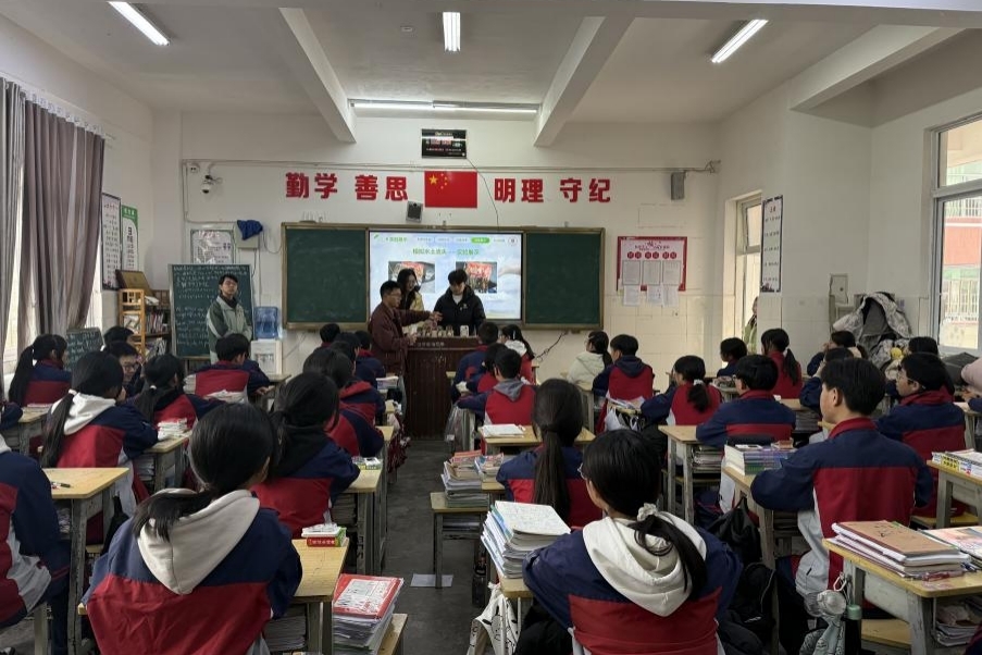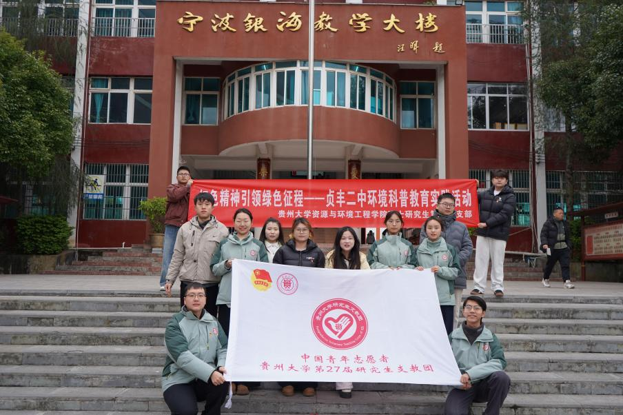 团委网站讯(记者 陈鈱 赵梓钧 报道|摄影 陈鈱)12月26日,我校第27届研究生支教团贞丰支队携手资源与环境工程学院硕士研究生第二党支部,在贞丰县第二中学共同举办“红色精神引领绿色征程”——贞丰石漠化治理中的生态智慧与奋斗精神科普活动。活动以“红色精神”为引领,以“生态治理”为载体,将知识传授、能力培养与价值塑造深度融合,在学生们心中播下生态文明的种子,厚植爱党爱国的情怀。