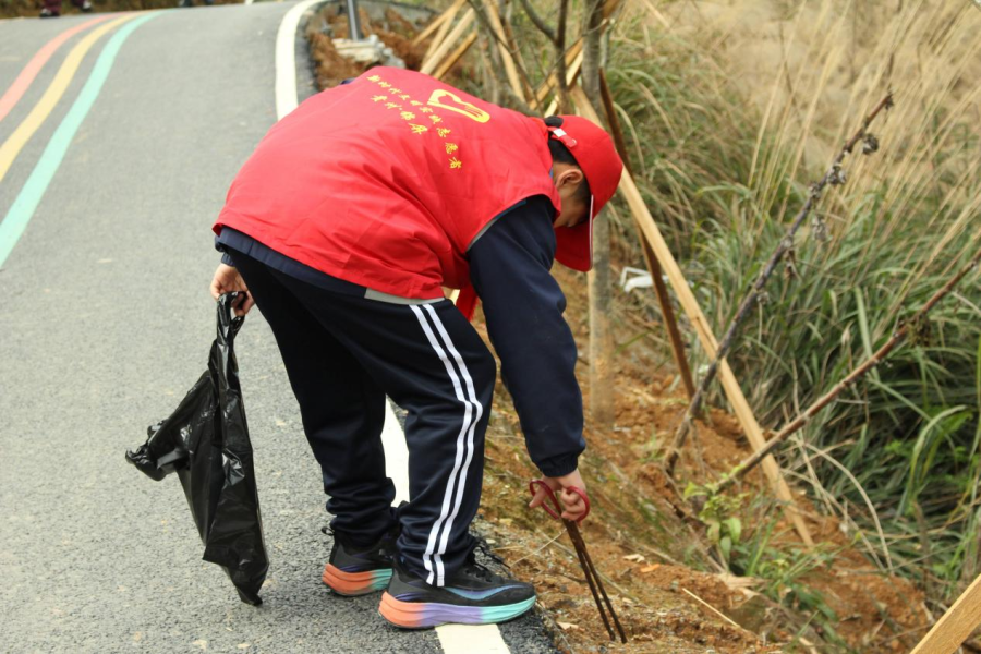 在山顶及沿途步道,志愿者们分工明确,手持工具对山道沿线的塑料瓶、烟头、包装袋等杂物进行拉网式清理,并向过往市民宣传文明出行、垃圾分类的环保理念。经过数小时劳动,小高山环境焕然一新,志愿者们以实际行动守护了家乡的绿水青山。