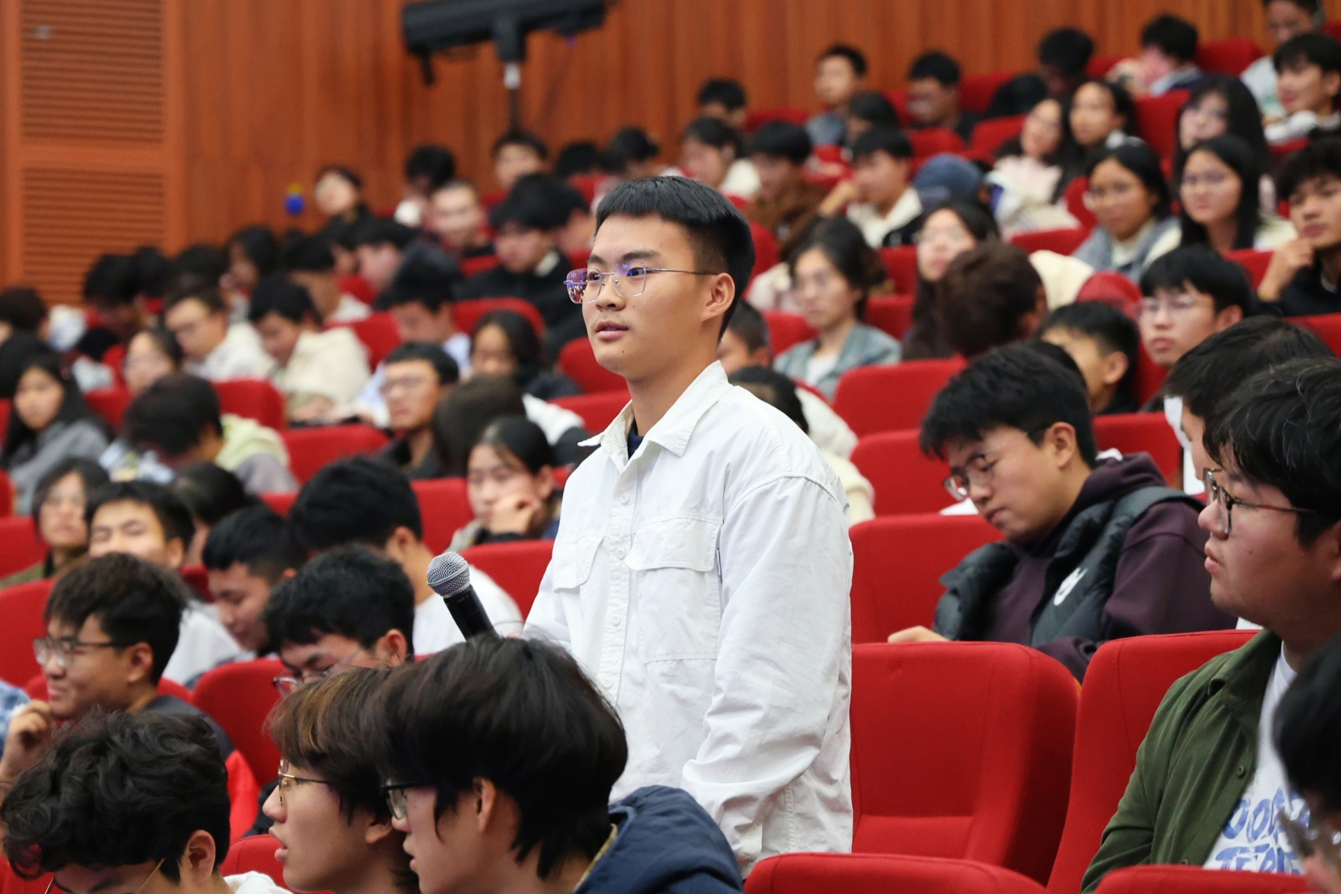 王履状从“为什么参加双创赛”出发,深入分析参赛对个人能力提升、学术视野拓展及资源网络构建的多重价值。他详细拆解了一个科创项目从选题调研、方案设计到实践推进、迭代优化的完整落地路径。同时,他鼓励同学们主动参与科研实践与科创竞赛,在交流协作中积累经验、锤炼本领,提升综合竞争力。