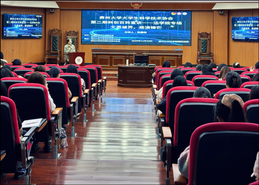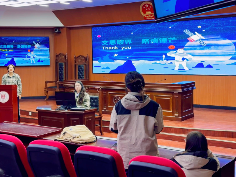 团委网站讯 11月10日晚,第二期“科创百科宣讲(宣讲进班级)”活动在法学院模拟法庭顺利举行。本次活动由校团委、创新创业学院主办,大学生科学技术协会、法学院大学生科学技术协会承办,面向法学院全体同学,旨在通过优秀科创学子经验分享,为在校学生提供参赛指引,助力同学们高效参与科创实践、提升竞赛竞争力。