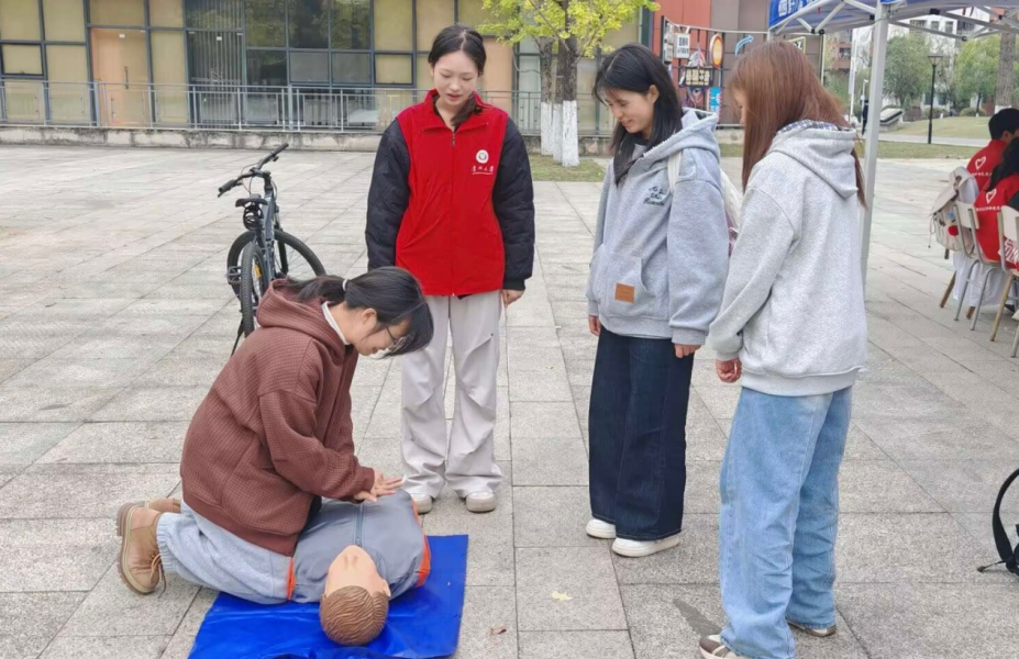 本次活动设置多项互动环节。在“巧手匠心,古法合香”体验区,同学们通过提供的配方指南和药材特性,亲手制作香囊,体验中药配制的智慧;“纸间传情,绘心天使”环节,通过折纸与绘画的艺术形式,传递了同学们对医护人员的敬意;“中药猜猜看”环节,志愿者引导同学通过触觉和嗅觉辨识常见药材,以趣味互动的方式加深对中药的认识;在“急救技能问答与演示”环节中,志愿者针对常见疾病及其治疗方法进行提问,并现场讲解和演示了心肺复苏等急救技能,有效提升了同学们的应急处理能力。