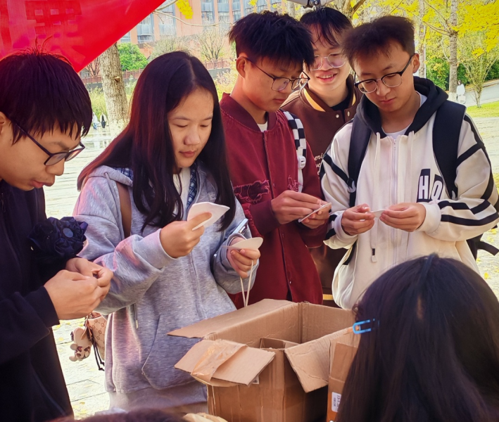 雅文楼广场设置了“立冬节气小知识”“诗词连连看”“手工饺子 DIY”“祈福祭灶”四大互动环节。参与者通过参与这四大互动环节,深入了解了中华传统节日的文化内涵,同时将对未来的美好期许寄托于一只只“饺子”里。