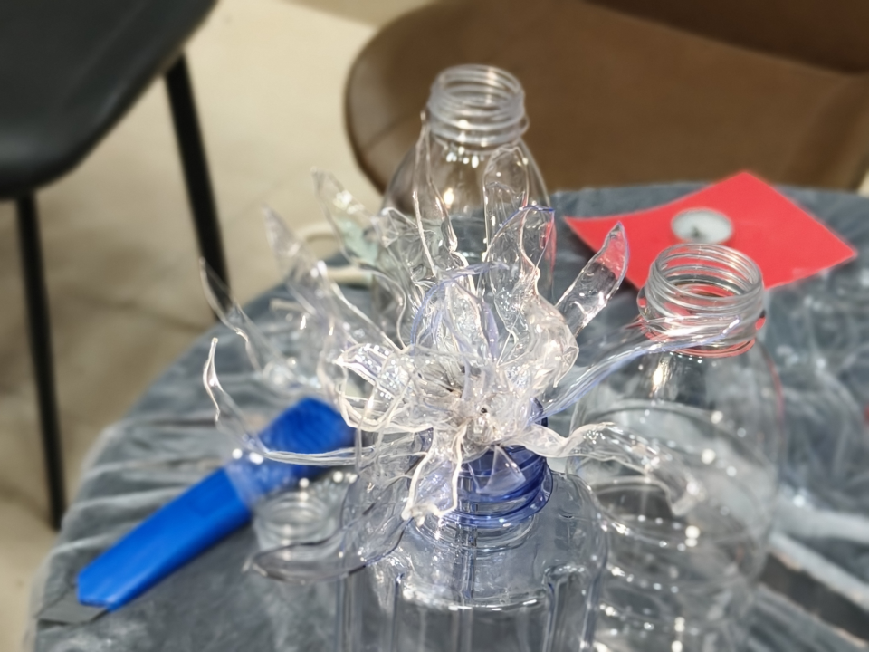 从剪裁瓶身到塑形花瓣,从调色上釉到组装定型,每一步都凝聚着同学们的专注与创意。随着作品陆续完成,一盏盏“琉璃昙花”在灯光映照下绽放出独特光彩,充分展现出传统美学与现代环保理念的完美融合。