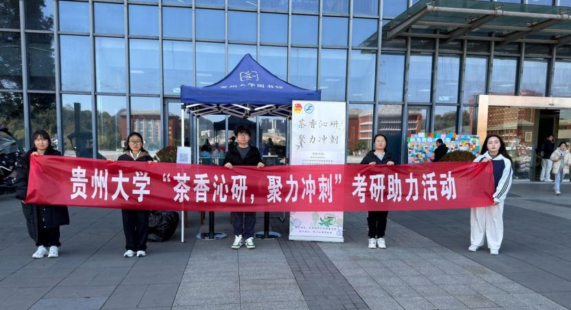 团委网站讯(记者 张策 报道|摄影 张策 陈佩慈)11月29日,我校学生会在西校区图书馆广场开展了“茶香沁研,聚力冲刺”考研助力活动。