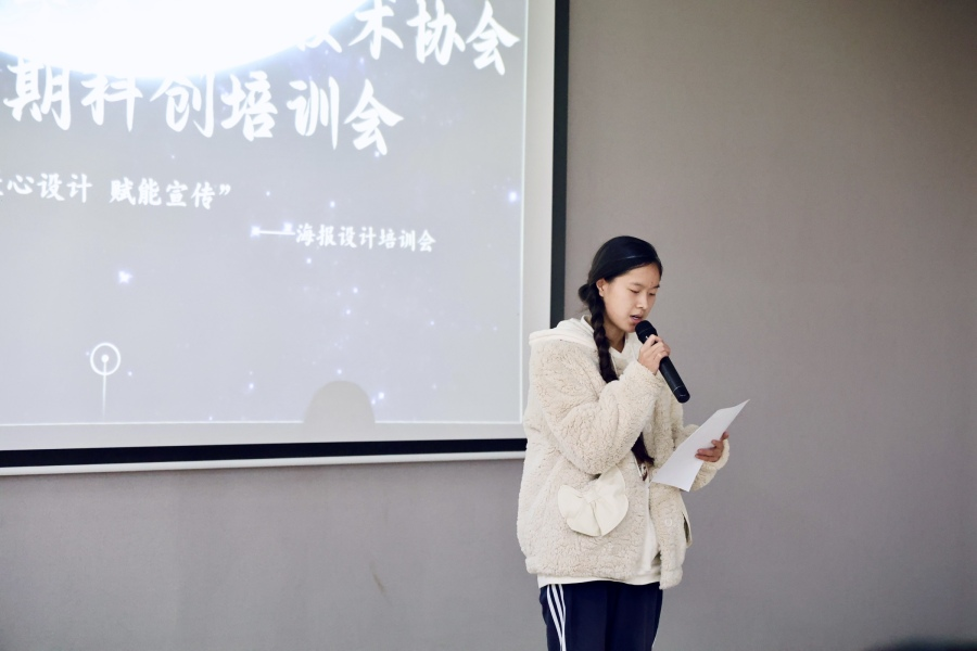 本次培训会中,任梓铭凭借丰富的设计经验,系统拆解了海报制作的五大常见误区,着重强调“善用留白、突出重点”的设计逻辑。她希望此次培训会能够助力同学们将所学运用到科创竞赛的宣传推广工作当中,切实提升宣传物料的设计质感与传播效果。