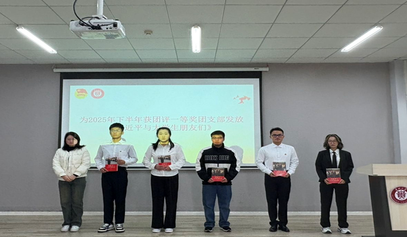 活动伊始,陈云霞老师为2025下半年获团评一等奖的团支部发放《习近平与大学生朋友们》(第一卷、第二卷),鼓励团员青年从书中汲取奋斗力量。