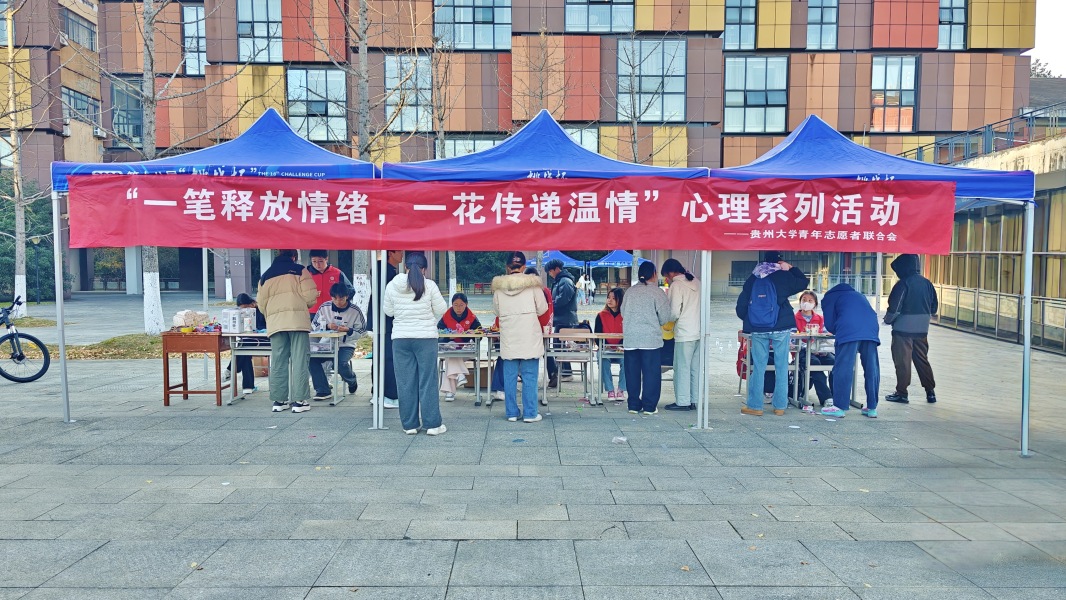 团委网站讯(记者 吴紫玉 报道 | 摄影 黎广玲)11月29日,我校青年志愿者联合会在西校区雅文楼广场开展“一笔释放情绪,一花传递温情”心理系列活动。活动以沉浸式、轻互动的新颖形式,吸引2000余名同学参与。