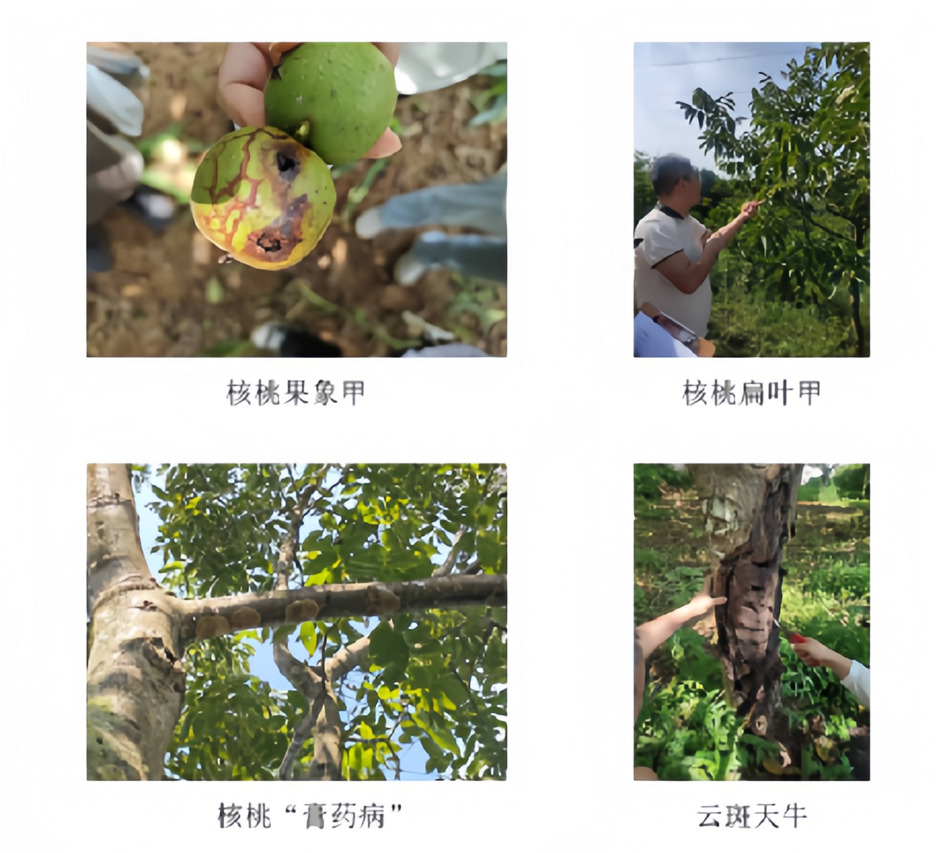 病虫害是核桃种植的主要难题,赫章县曾因核桃褐斑病、膏药病、核桃扁叶甲、刺蛾、云斑天牛等频发导致减产甚至绝收。针对这一问题,团队深入田间研究病虫害发生规律,提出 “生物防治为主、化学防治为辅” 的绿色防控技术体系。