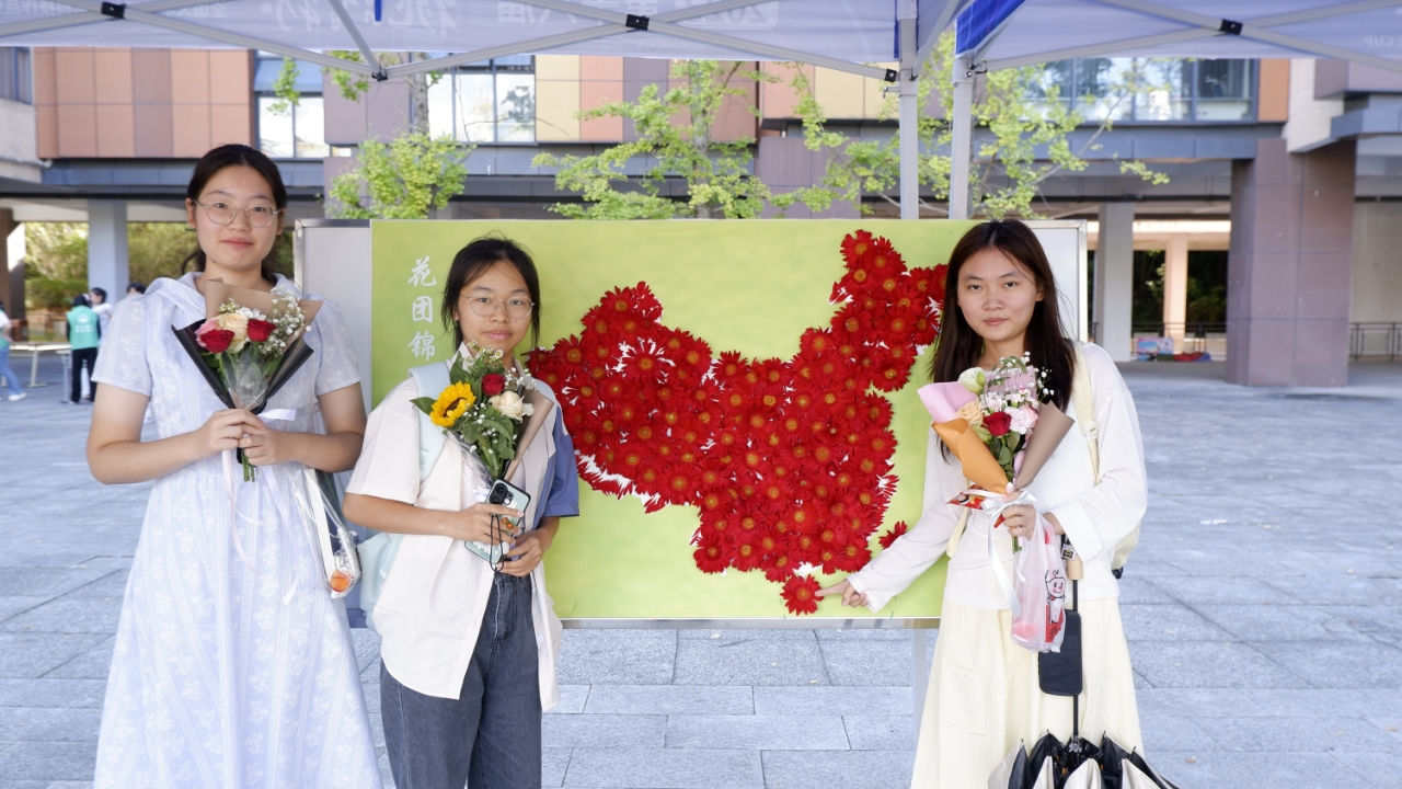 协会成员结合自身专业知识,从色彩搭配原理到东西方插花技艺,为同学们进行详细讲解和示范,帮助大家在实践中提升艺术素养。“鲜花开遍祖国疆土”环节,插花艺术协会志愿者仔细指导参与者,将鲜红色的花朵粘贴于巨幅祖国地图白板上。随着花朵渐次铺满版图,犹如一片绚烂花海覆盖山河,象征着青年学子以青春热情装点祖国大地的坚定信念。正如一位参与者所言:“每一朵花都是一个承诺,我们愿做美的播种者,让青春与祖国同频共振。”