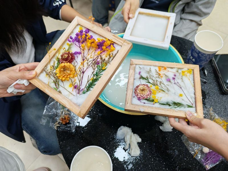动手制作环节,同学们在工作人员的引导下,严格地按照规范操作,将脑海中构思的图案通过纸浆与花草巧妙融合,制作出一张张独一无二的花草纸作品,整个制作过程充满了探索与创造的乐趣。