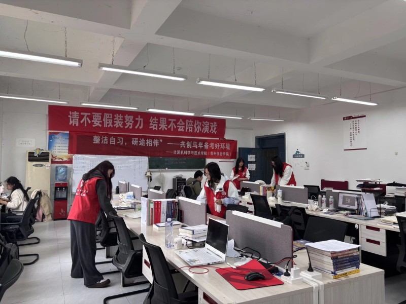 我校计算机科学与技术学院(贵州保密学院)青年志愿者协会开展考研自习室清扫活动