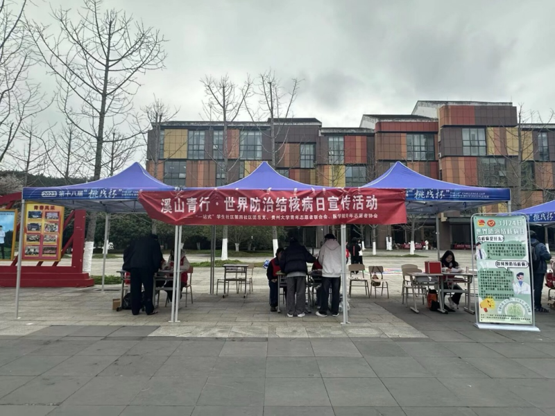 团委网站讯 (记者 陈佳妮 报道 | 摄影 张乐乐 ) 3月22日,由“一站式”学生社区第四、第六社区团总支主办、贵州大学青年志愿者联合会、医学院青年志愿者协会承办的“世界防治结核病日”宣传活动西校区雅文楼广场举办,本次活动吸引了800余名同学参与。