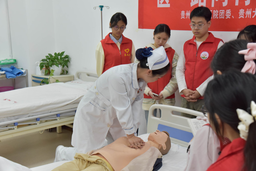 活动在尚洁主持下拉开帷幕,护理部内科护士长彭钰竹围绕医院发展历程、学科建设、先进医疗器械及护理服务体系作了简要介绍,并与门诊护士长谢美金教学生现场演练技能,以专业规范的操作和细致温和的讲解,演示了心肺复苏、海姆立克急救法及AED使用全流程。